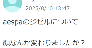最近aespaジゼルさんに顔が変わった疑惑が出ています