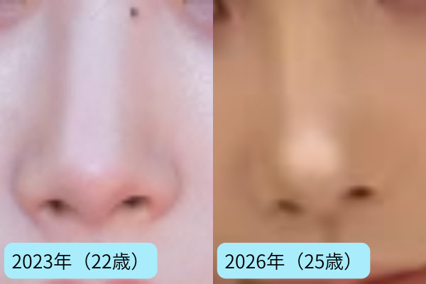 2023年と2026年の画像を比べると、鼻筋の通り方や鼻先のシャープさに少し違いを感じるかもしれません。