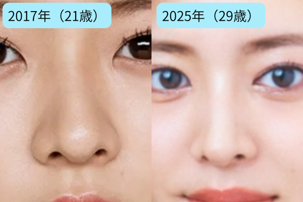 2025年になると、フェイスラインが引き締まったことで鼻筋がより通って見え、小鼻もすっきりした印象になります。