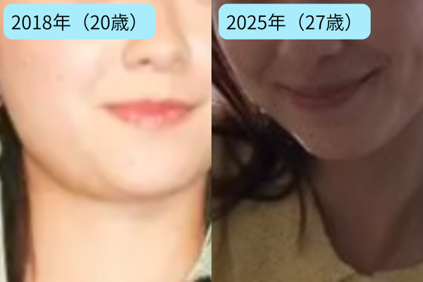 20代後半の現在は、顔全体が引き締まり、顎のラインがよりシャープに見えます。