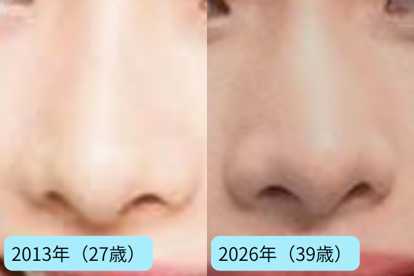 ですが、これもお顔全体が引き締まり、鼻周りの肉付きが以前よりも削ぎ落とされたことによる視覚的な影響といえるでしょう。