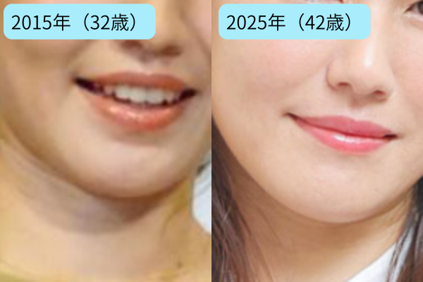 鼻や輪郭も特別に形が変わった印象はなく、メイク・撮影・年齢による変化が大きいでしょう。