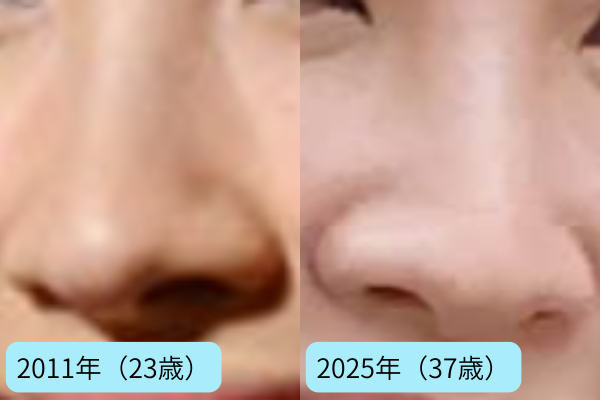 小鼻の広がりが抑えられ、鼻全体の形が以前よりも洗練された印象を受けます。