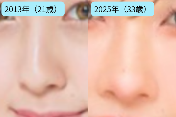 鼻については、過去と現在で大きく形が違うというよりも、立体感の出方が変わったように見えます。