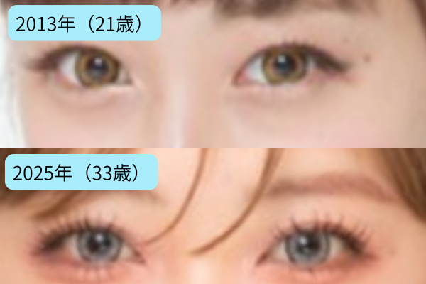 ただし、これは年齢によるまぶたの変化や、メイク方法の進化、撮影時のライティングによる影響も大きいと考えられます。