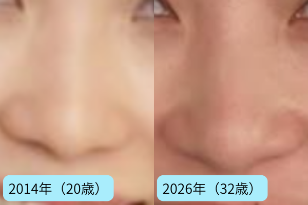 一方、2026年の写真でも鼻筋の通り方や小鼻の大きさに大きな変化は見られず、基本的な形はほとんど変わっていない印象です。