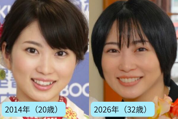 一方、2026年の写真では、頬のボリュームが少し落ち着き、フェイスラインがすっきりした印象があります。