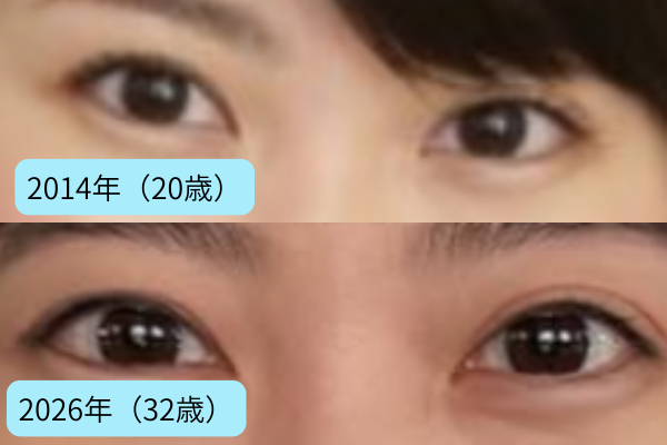 2026年では、二重のラインがややはっきりしたようにも見えますが、目の横幅や目頭の形に大きな変化は見られません。
