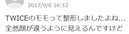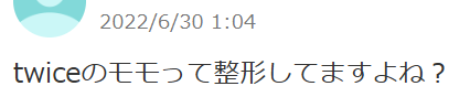 最近TWICEモモさんに整形疑惑が出ています