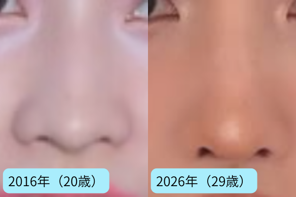 2016年と2026年の写真を並べてみると、鼻の印象がより洗練されたものへと変化しているのが一目で分かります。