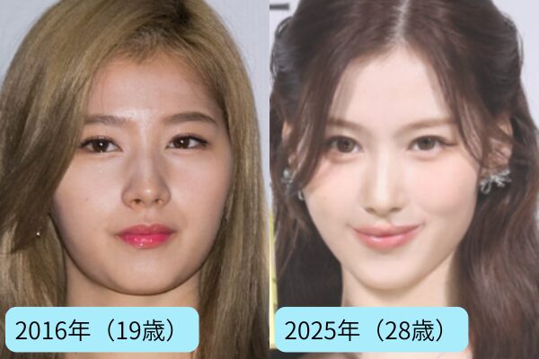 輪郭は、10代の頃のふっくらした幼さが消え、シャープで洗練されたVラインへと変化したことで、より都会的で大人っぽい印象を与えています。